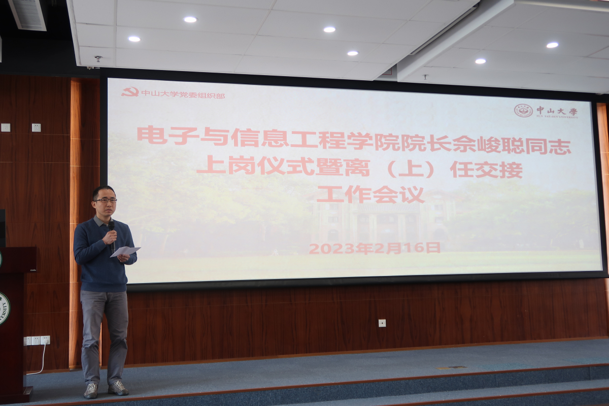 佘峻聪院长作履新发言。他对邓少芝院长致以崇高的敬意,感谢邓少芝院长对学院发展作出的卓越贡献。他表示,接任学院院长,深感责任重大、使命光荣,也感谢学校的信任。履新后,他将扛起推动学院实现高质量发展的责任担当;在学院党委的领导下,切实履行岗位职责,贯彻落实立德树人根本任务;以学校和学院的“十四五”规划发展目标为引领,团结带领全院师生员工,建设“一流学科”和“一流本科专业”,全力以赴推动学校和学院高质量内涵式发展。
