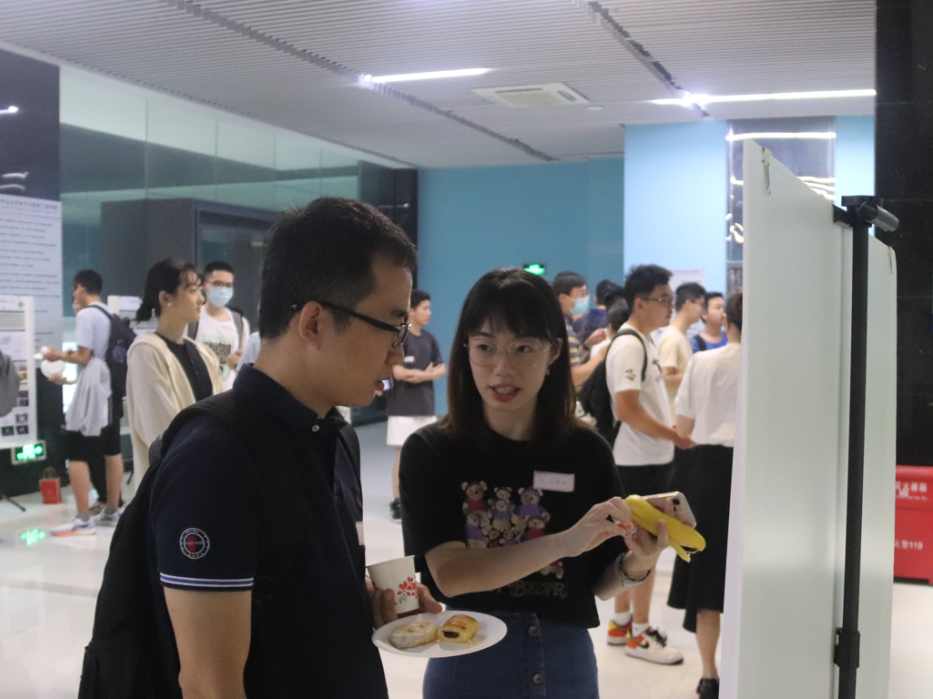 学术沙龙活动在开班仪式结束后进行,分设“教师科研团队展”和“优秀本科毕业论文展”两个主题。为帮助同学们直观了解学院教师的科研团队和课题,促进师生交流和双选,活动现场布置了众多精心设计的展板海报。同学们围绕实验室课题、科研实训等话题,与现场老师展开热切交流。依托基地班开班仪式,学院首次组织了优秀本科毕业论文展。获评优秀毕业论文的毕业班本科生,前期自主设计主题海报并在活动现场进行展示讲解;低年级同学则通过与优秀师兄师姐的交流,拓展专业视野的同时,也加深了对基地班人才培养的理解。活动还安排了优秀毕业论文“最佳风采奖”的评选,由现场参与的师生进行投票,最终王保创、王峥洋和李金东三名同学荣获“最佳风采奖”。