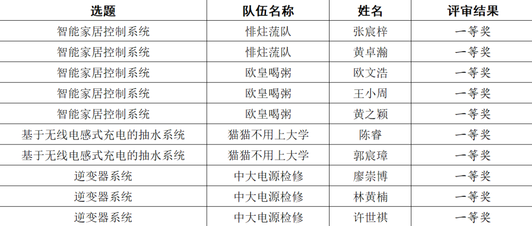 最后让我们再次祝贺各个获奖队伍,此次比赛活动远不是大家电设的终点站,希望大家能够继续保持对电设的热情与激情,未来也期待会有更多的同学能够积极参与到电子设计的相关活动,锻炼动手能力,培养创新意识和工程素质,努力成为具有“学习力、思想力、行动力”能够引领未来的创造型人才!