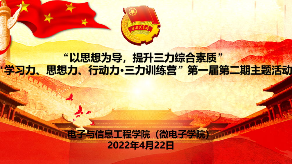 为深入学习贯彻习近平总书记关于教育的重要论述,落实立德树人根本任务,努力提升学生的学习力、思想力和行动力,培养德智体美劳全面发展的社会主义建设者和接班人,2022年4月22日,电子与信息工程学院 “学习力、思想力、行动力·三力训练营”第一届第二期以“思想为导,提升三力综合素质”为主题顺利开展。