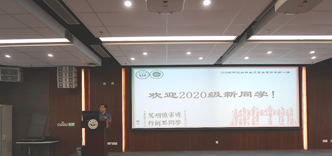 会议正式开始后,全体师生起立,奏唱校歌。学院院长邓少芝教授首先致辞,她对研究生新生们到来表示热烈的欢迎,并简要介绍了学院发展历史及学科设置、师资力量、科研环境等基本概况。邓院长希望研究生新生们能够认识新阶段学习目的,适应不同教育层次的学习,以个性化培养方案完成自身学业。她倡议研究生同学在学习和科研中,要有“活跃的思想、科学的态度、扎实的作风、拼搏的精神”。她特别强调,每位同学都要树立正确的学习准则,不要触碰学术纪律红线,科学合理规划研究生阶段学习,努力成为对社会有更大贡献的人才。