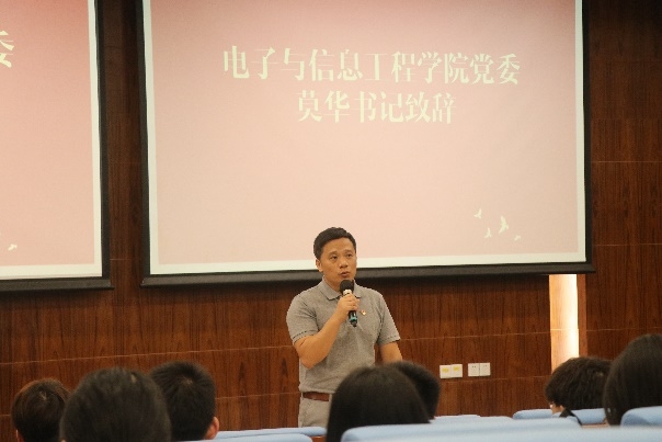 2020年11月25日,电子与信息工程学院学生马克思主义学习小组暨2020-2021青马学堂开班仪式顺利举行,学院党委莫华书记、王琅副书记、团委书记林穆伟老师、辅导员林玥琪老师,以及全体青马班学员和学生马克思主义学习小组代表约100人参加本次活动。开班仪式上还特别邀请到中共广东省委党校乔亚南教授讲授第一课,主题为《学好用好〈习近平谈治国理政〉(第三卷)》。仪式由学院团委书记林穆伟老师主持。