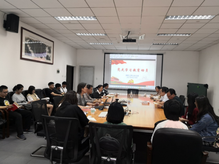 2021年4月19日,教职工第一党支部开展党史集中学习,支部书记刘飞老师上党课,集体观看“党史学习教育动员”的视频;4月22日,支部集中收看沈成飞教授主讲的《新民主主义革命的伟大胜利与成功经验》专题讲座。