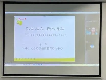 为落实立德树人根本任务,提升学院心理健康教育水平,充分发挥班委特别是心理委员在朋辈互助中的积极作用,营造更加积极向上、温馨和谐的学院育人环境,12月9日,电子与信息工程学院积极响应“我为群众办实事”号召,特别举行心理辅导团体培训活动,邀请学校心理健康教育咨询中心朱洁老师开设心理辅导线上培训讲座,学院党委副书记王琅、团委书记陈子静老师、本科生和研究生各班班长与心理委员共同参会。