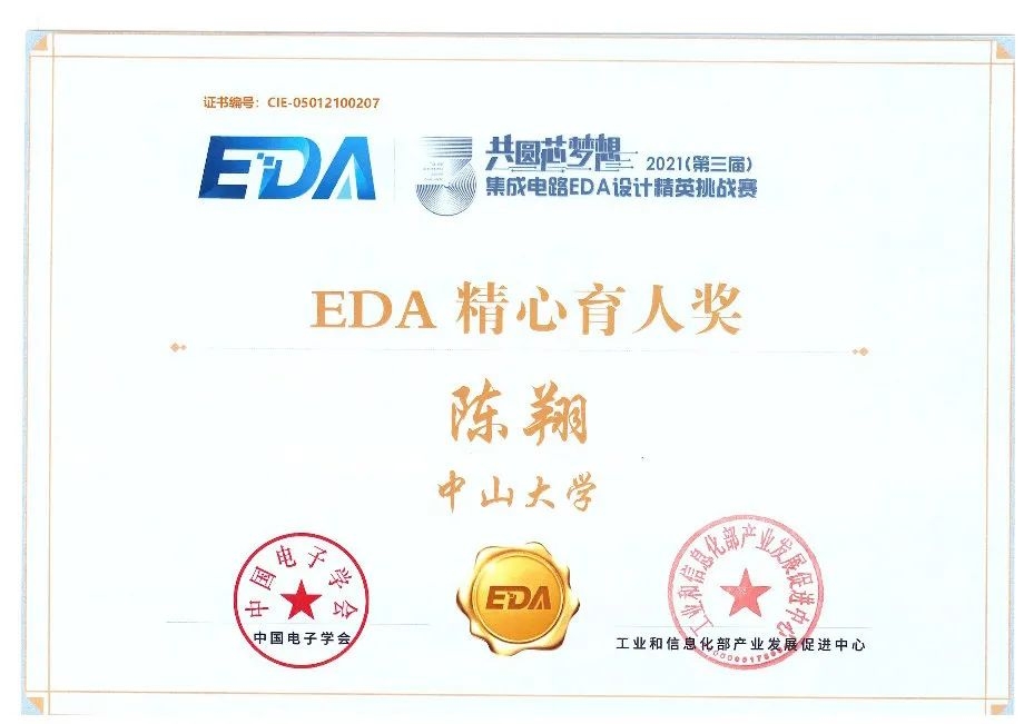 与此同时,我校以三支获奖队伍的成绩荣获本年度赛事“优秀组织奖”(另有一支获奖队伍来自我校计算机学院)。陈翔老师还获得大赛组委会颁发的“EDA精心育人奖”,该奖项用于表彰连续三年均指导学生在EDA设计精英挑战赛中获得荣誉、为EDA人才培养做出突出贡献的教师,全国一共授予10位。