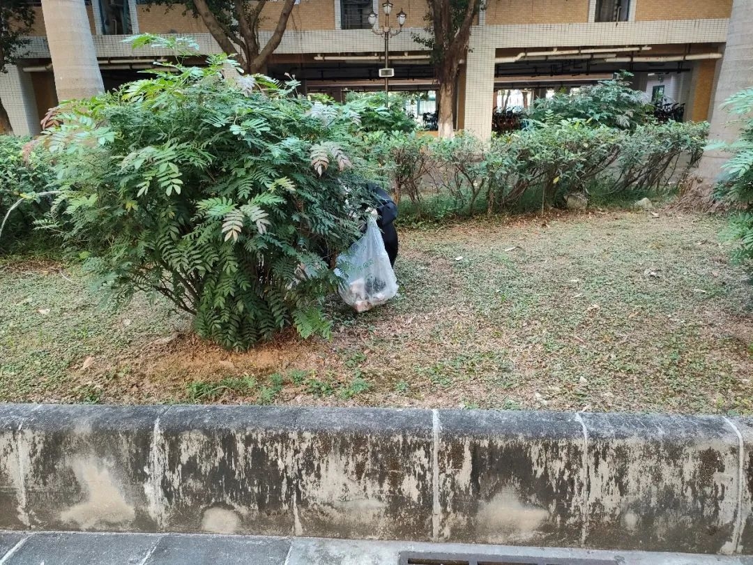 在花丛中,通常也藏着很多各种小垃圾,而且这些垃圾是很难被清洁阿姨发现的。支部党员同志本着不放过每一个死角的精神,对这些花丛小角落一一进行了仔细清理,还草地一片绿色。