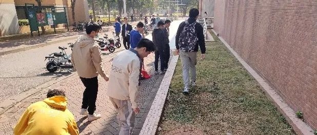 支部全体党员同志都积极参与到这场义务劳动活动中,大家一起来到东校园生活区,在任务分配好后,都到各自负责区域清扫。同学们十分卖力,或用扫把铲子清扫垃圾,或直接俯身捡拾垃圾,校园里随处可见他们的身影。