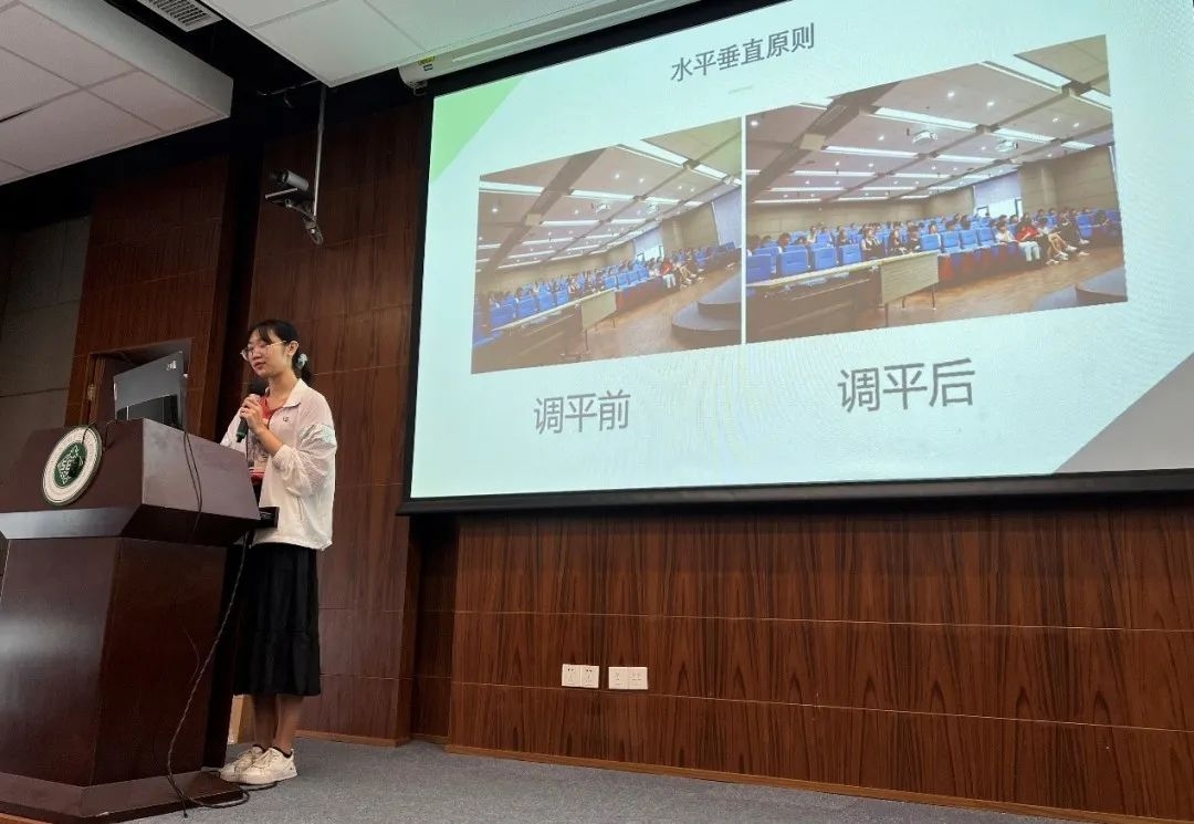 冯旭宸同学分享摄影技巧经验。她首先讲解照片的构图要素和构图方法,分享优秀照片拍摄技巧和实用的照片后期处理技术,并举出多个正例与反例帮助大家更好地提升摄影能力,也增强学员们对美感的理解认识。
