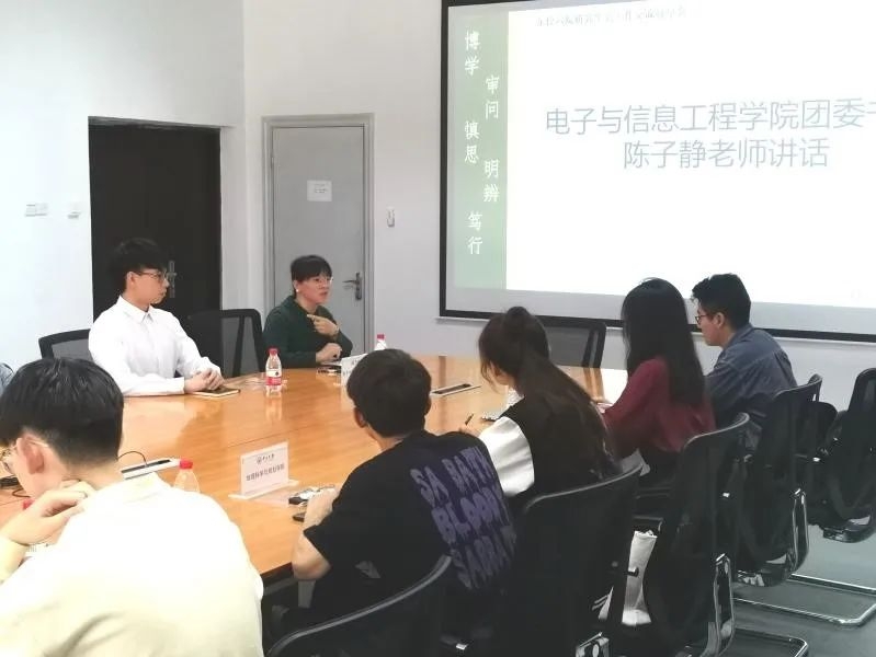 为进一步贯彻落实共青团中央办公厅、全国学联秘书处关于加强和改进新时代学联学生组织工作、改进学联学生组织工作人员作风的相关规定与措施,增进不同学院研究生会间交流与合作,共同在总结过去一年研会工作的基础上,汲取经验、改进不足,加强对研究生同学们的思想引领和学术引领,2022年3月11日,电子与信息工程学院研究生会举办东校园六院联合研究生会工作交流会,药学院、政治与公共事务管理学院、传播与设计学院、地理科学与规划学院、环境科学与工程学院研究生会学生代表,以及我院团委书记陈子静、研究生会负责人共同参加了本次交流会。