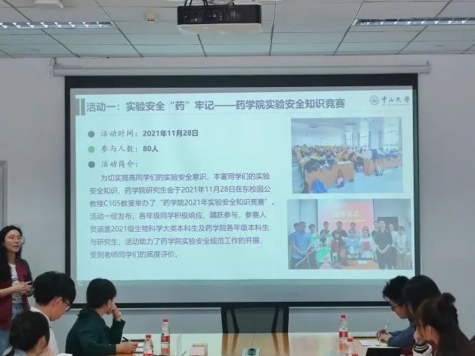 接着,各学院代表依次分享本学院研会近一年以来的工作情况。其中,牟炳叡同学介绍了我院研会的组织架构、人员组成和近一年来举办的精品活动,包括“穗信”论坛、学风建设和学术讲座、心灵驿站等等,总结工作经验并对本学期系列活动计划做出展望。其余各个学院也都展现出充分的准备:程馨仪同学分享了药学院研会举办的安全知识竞赛,帮助同学们强化实验安全意识;陈杰华同学介绍了政治与公共事务管理学院研会依托校友举办的选调生模拟面试活动,帮助同学们提前感受到面试氛围……环境科学与工程学院、传播与设计学院、地理科学与规划学院的代表也都纷纷展示了本学院研会的优质活动和特色亮点。大家互相学习,受益匪浅。