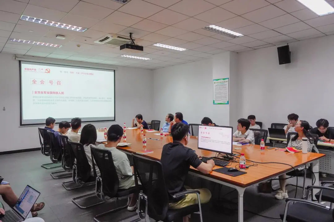 首先,刘飞书记带领各支部书记集中学习党的二十届三中全会精神。这次全会是在以中国式现代化全面推进强国建设、民族复兴伟业的关键时期举行的一次十分重要的会议。全会审议通过的《中共中央关于进一步全面深化改革 推进中国式现代化的决定》深刻阐述了进一步全面深化改革、推进中国式现代化的重大意义和总体要求,是指导新征程上进一步全面深化改革的纲领性文件。学习好贯彻好党的二十届三中全会精神,是当前和今后一个时期全党全国的一项重大政治任务。刘飞书记强调,学院要上下联动、共同推进,按照学校党委统一部署及工作要求,将贯彻落实党的二十届三中全会精神与教育教学、管理服务等深度融合。希望各支部联系专业实际,通过“三会一课”等形式深入开展党的二十届三中全会精神的学习。