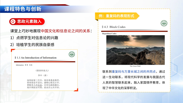 作为通信工程专业的核心课程,学院于2016学年秋季学期首次开设了本科课程《信息论与编码》,至今已经累计达到700学时,并吸引了800余名学生选课。为打造可持续发展的课程体系,学院于2022学年秋季学期推出了《信息论与编码》线上学习资源,为广大学生提供更多元化和个性化的学习模式,优化课前预习的效果,提高课堂学习的质量,强化课后温故的效果,有效提升通信工程专业的人才培养质量,并夯实现代通信基础研究的前置教育。